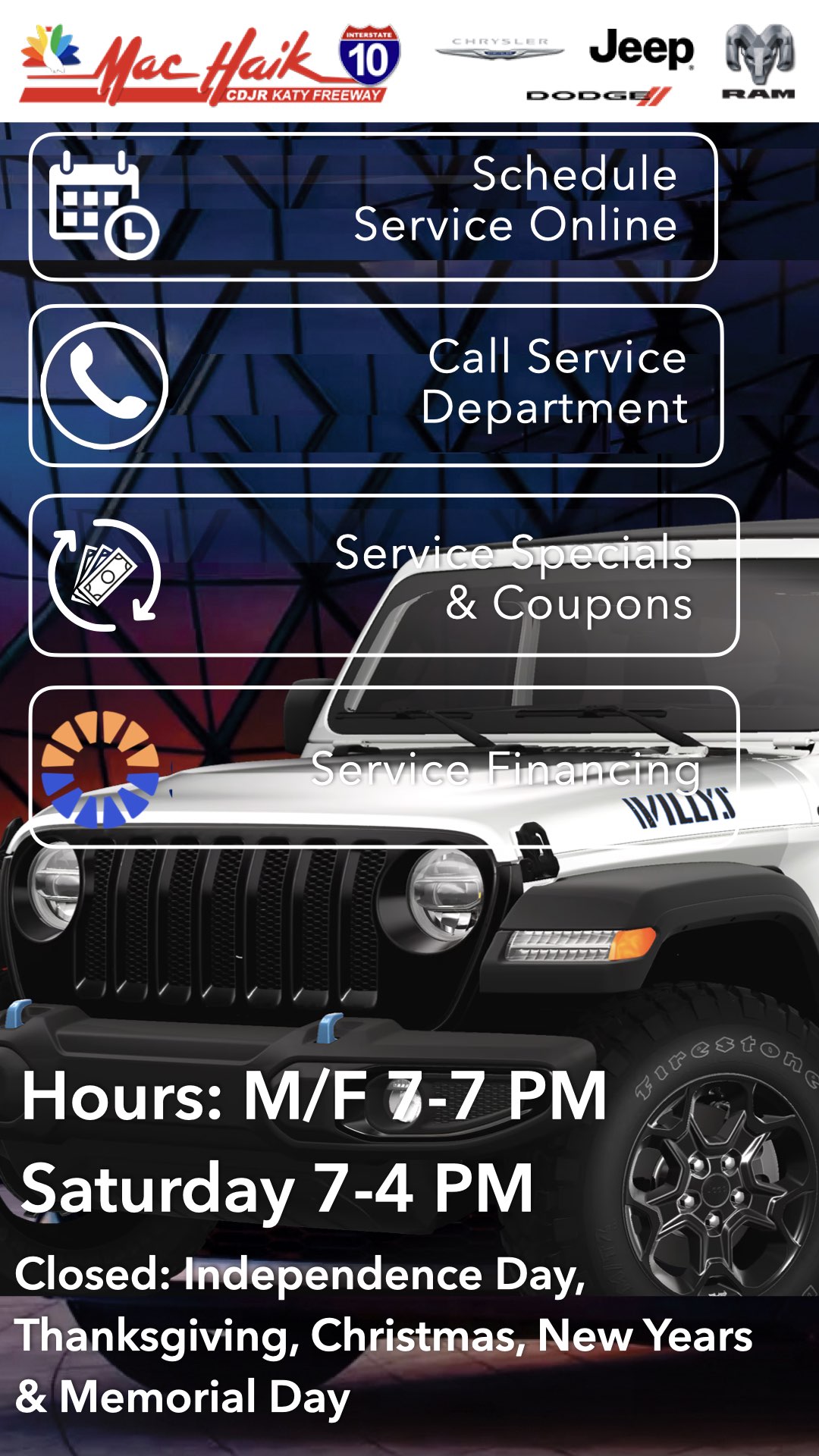 Directions To The Service Department. Google Maps Click Here.